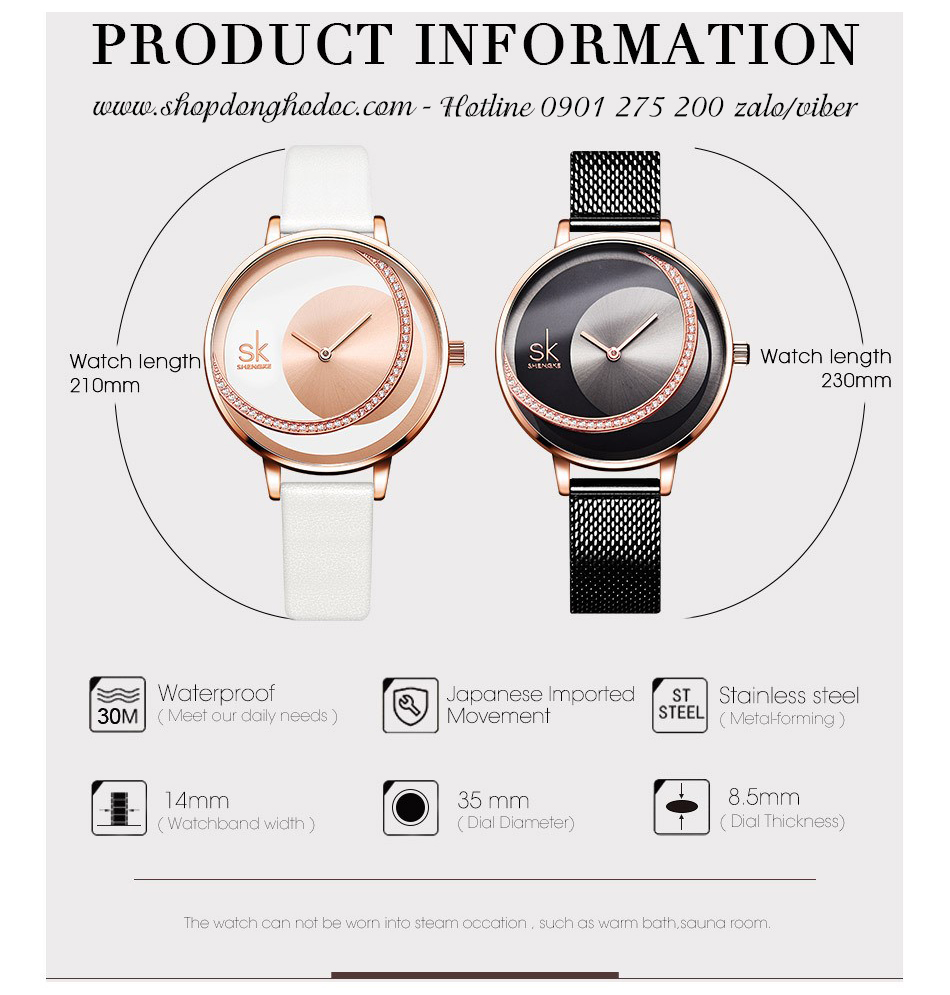- Tên: Đồng hồ nữ dây da mặt tròn chiếc nhẫn màu trắng sang chảnh Shengke SK ĐHĐ11401