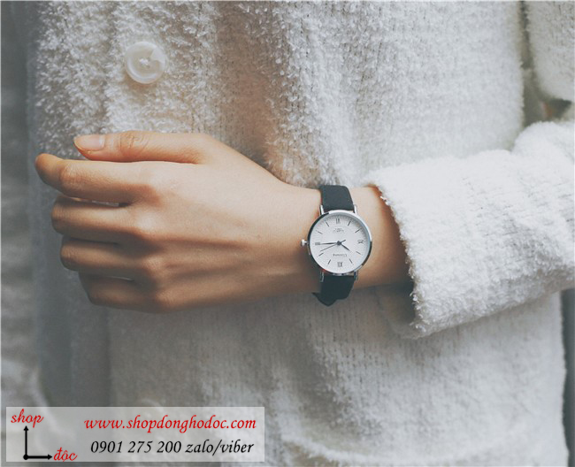 Đồng hồ nữ dây da mặt tròn đen cá tính ĐHĐ15702