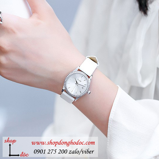 Đồng hồ nữ dây da mặt tròn đính đá trắng sang chảnh Guou ĐHĐ13001 được yêu thích bởi dáng vẻ thời trang sang trọng và hiện đại. Sở hữu mặt đồng hồ hình tròn nhỏ đơn giản và tinh tế, không nhiều chi tiết phức tạp nên được khá nhiều cô nàng có cổ tay nhỏ. Dây đồng hồ màu trắng kết hợp cùng mặt bạc tạo thêm một chút nét quyến rũ mà các đại chế tác của Guou muốn gửi gắm đến các cô gái của mình.