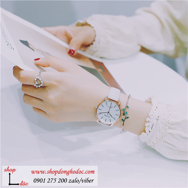 Đồng hồ nữ dây da mặt tròn trắng sang chảnh ĐHĐ15602