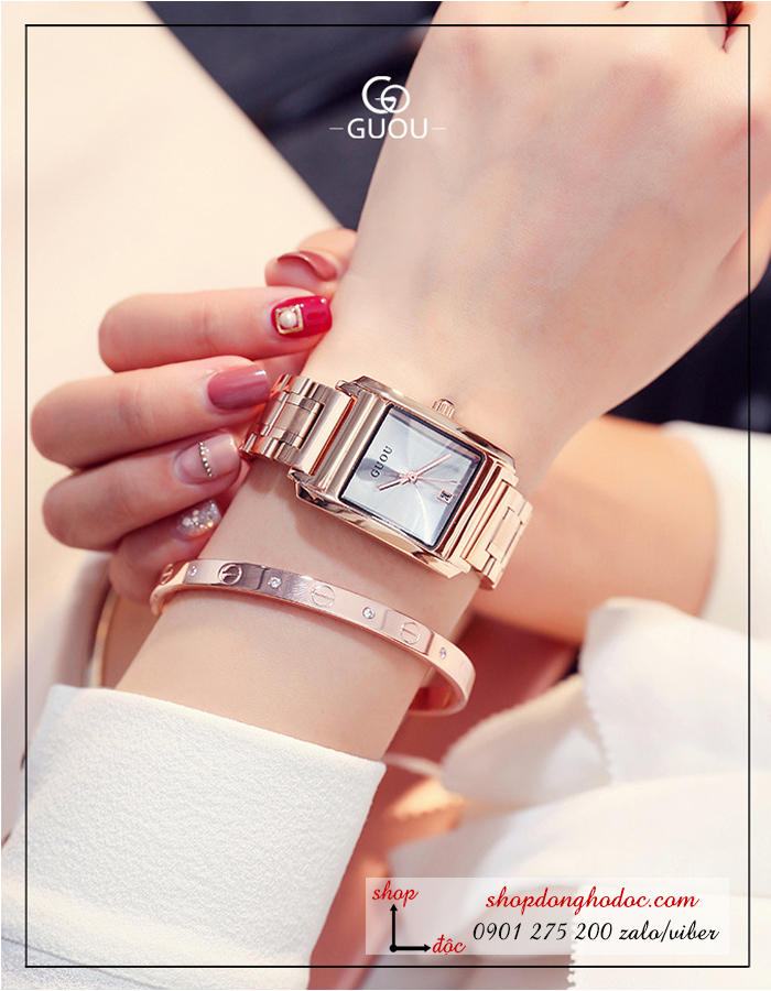 Đồng hồ nữ dây kim loại mặt vuông trắng sang chảnh ĐHĐ5506 được nhiều nàng yêu thích bởi những thiết kế dẫn đầu xu hướng đồng hồ thời trang với phong cách trẻ trung, năng động. Guou ĐHĐ5506 với vỏ ngoài bằng thép không gỉ mạ vàng hồng đầy nữ tính. Dây đeo cũng màu vàng tạo vẻ đẹp thời trang khi đeo trên tay các quý cô. Mặt số với thiết kế 3 kim gồm mặt phụ chỉ ngày tiện lợi.